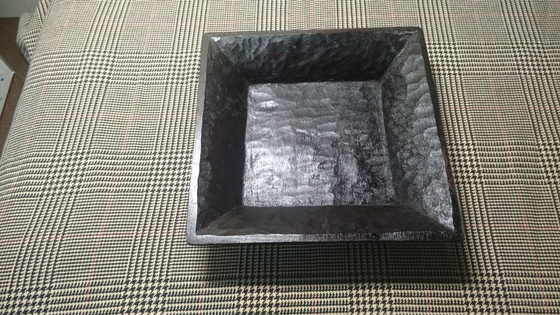 黒中漆を塗ったあとに、拭き漆で仕上げた小さめの角皿です。