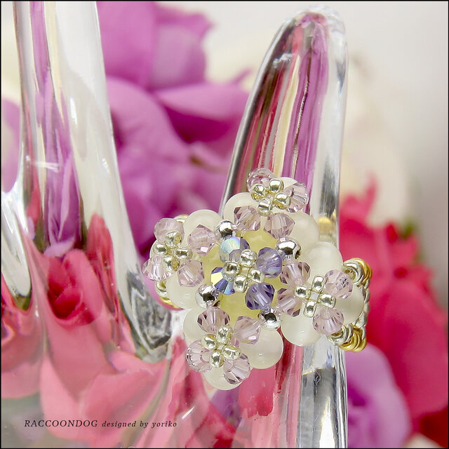 やわらかな日差しの中に咲いたお花【スワロフスキー/キャッツアイ ビーズリング】《ビーズアクセサリー》