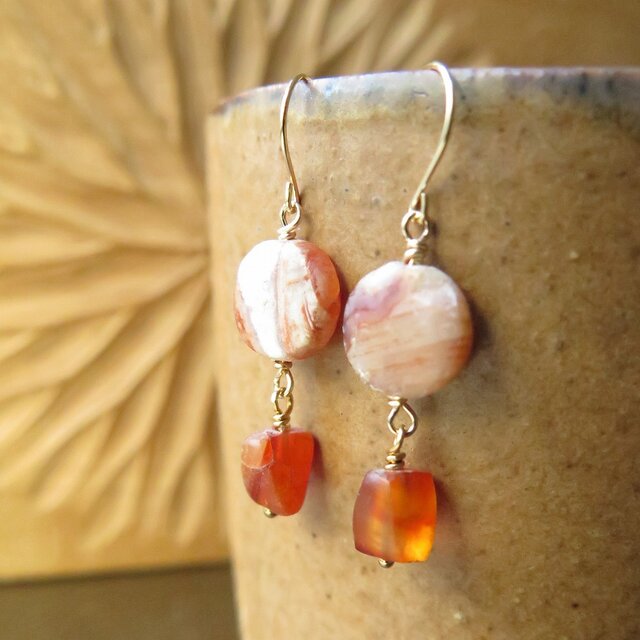 アンティーク 古代カーネリアン 楔&丸 ピアス&イヤリング 千世 chitose
