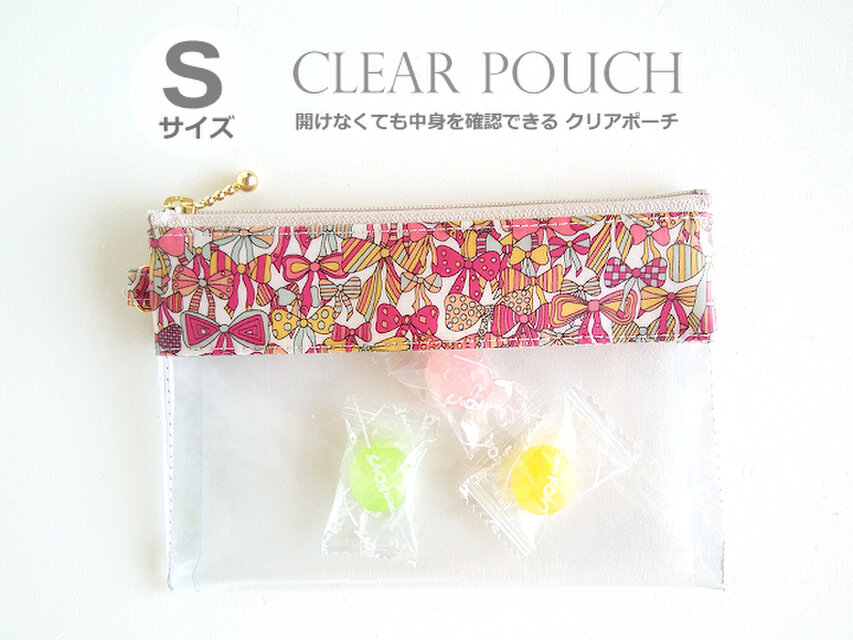リバティ Sサイズ クリアポーチ (16) ジェニーズリボンズ ピンク