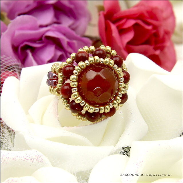 ビーズ,リング,コスチュームジュエリー,レッド,赤,ビーズアクセサリー,天然石,珊瑚,レッドメノウ