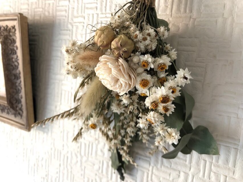 すべてナチュラルなドライフラワーを使用しておりますので、色や形が写真とちがう場合がございますご了承ください。また発送中の花おち、葉こぼれはご理解ください。