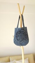チェック&ストライプのフレンチコーデュロイ(ダークブルー)で作ったバックです。