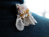 このブローチに使われているのはフランスの厚みのあるシルクサテン地とパリのブロカントで見つけたアンティークレースです。