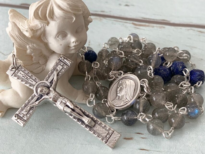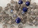 仕事運を高める相性といわれているブルーラブラドライトとラピスラズリのロザリオです。