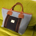 配色はライトグレーの8号帆布とパープルがかったチャコールグレーのざっくり帆布で作ったトートバックです。