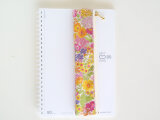リバティの人気生地(ビニールコーティングつや無)、マーガレットアニー Margaret Annie(イエローピンク)でペンポーチ(A5サイズ用ベルト付き)を作りました。