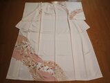 繊細で美しく、品のある桜色に描かれた、まるで千代紙のような花々が奏で長れる、素敵なアンティーク着物をほどいて、画像デザインのフォーマルワンピースをお作りいたします。