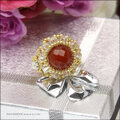 レッドアゲートのリング・クリスタルバージョン【天然石レッドメノウ ビーズリング】《ビーズアクセサリー》