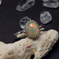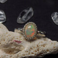 遊色の美しいエチオピアオパールを両脇に釈迦玉をあしらったリングに仕上げました。