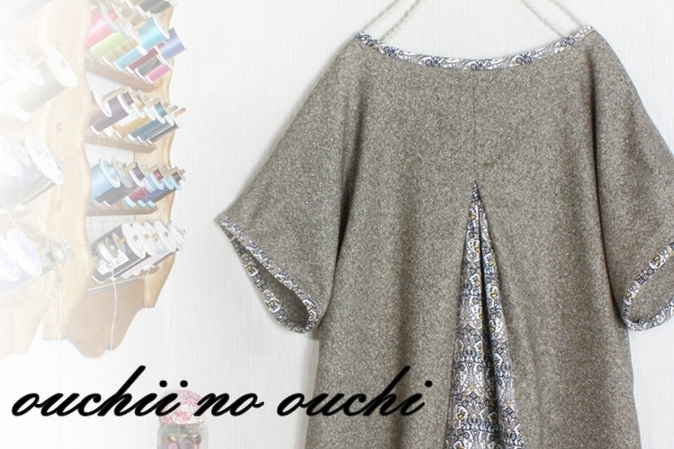 後ろ切り替え部分にリバティコーデュロイ<Morris Flutter>(モリス・フラッター)をいれたドルマンタイプのチュニックワンピです。