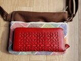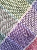 爽やかな色合いでチェック風に織りあげた裂き織布と、8号帆布でサコッシュを作りました。
