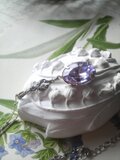 淡いパープル、美しく繊細なカットはどの角度からみても美しく、奥から煌き、幾層にも反射し、オーバル型のGlassが上品に煌きます。