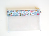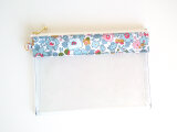 リバティの人気生地(ビニールコーティングつや無)、ベッツィ Betsy (グレー)で中身が見えるクリアポーチを作りました。