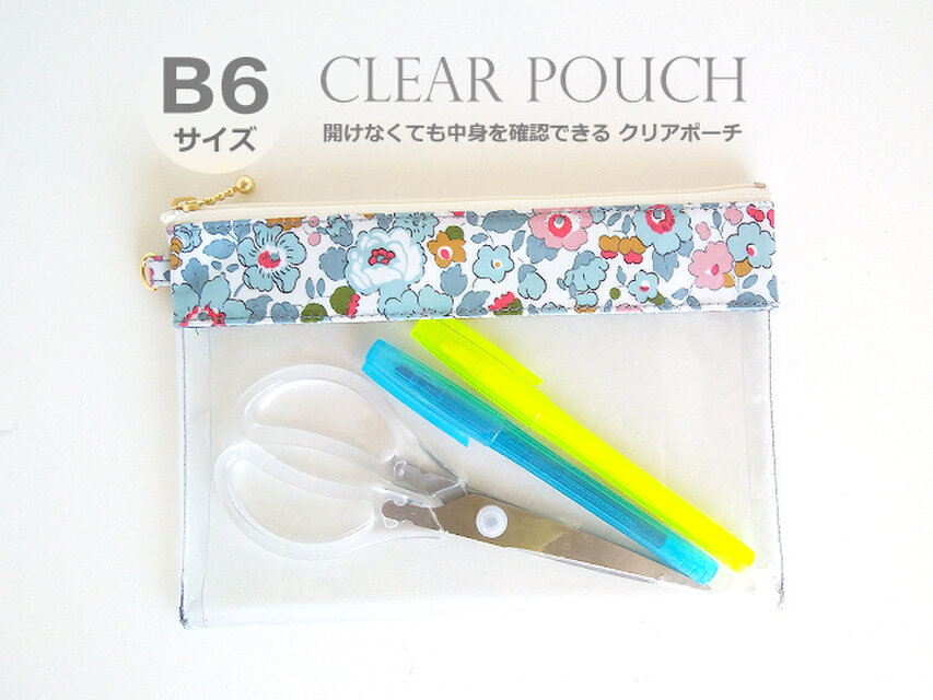 リバティ B6サイズ クリアポーチ(20)ベッツィ グレー