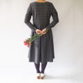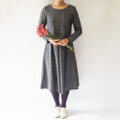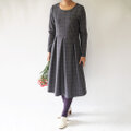 ┗ポケットやファスナー、ボタンなど余計な装飾を一切はぶき、シンプルを極めたワンピースです。その分小物やアクセサリー、着る人を引き立てます。