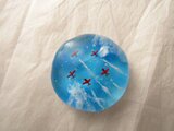 青空をバックに、5機編隊のプロペラ機が飛行している…というモチーフのガラス作品です。