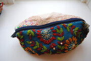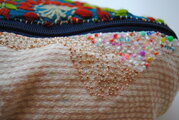 民族調の刺繍のしてある生地とオリジナルのビーズを合わせました。