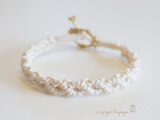 フラワーマンテルと交差模様のマクラメ編みブレスレット(マットゴールド×生成り)