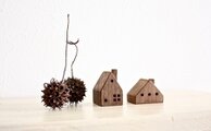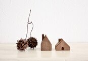 ヨーロッパの民家をモチーフに、無垢の木から削りだして小さな木の家を作りました。 2個セットでの販売になります。