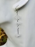 小さな氷砂糖のかけらのようなクリスタルと、細い銀の線でできたピアスです。