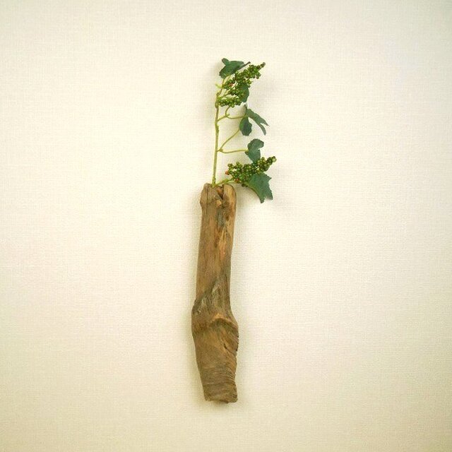 【温泉流木】上質流木のスリムな壁掛け一輪挿し R050027