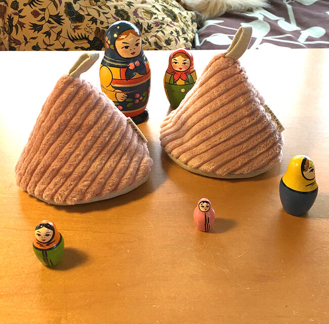 送料無料 なべつかみ・コーン型ミドルサイズ(ピンク色ビッグコーデュロイ&フラックス色)2個セット