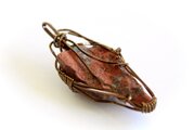 クリムゾンキュープライトの深い色合いのタンブルをアンティークゴールドのワイヤーで巻きました。