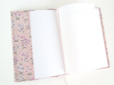 リバティの人気生地、ミルフルール Mille Fleurs(ライトピンク)のラミネート生地(つや無)でA5サイズのノートカバーを作りました。