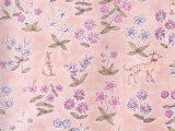 生地の色は地の色が、少し濃淡のあるライトピンク、花の色にライトパープル、ピンク、ホワイトなど、動物の色にライトベージュ、ピンクなどが使われています。