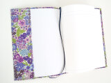 リバティの人気生地、マーガレットアニー Margaret Annie(パープル)のラミネート生地(つや無)でA5サイズのノートカバーを作りました。