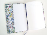リバティの人気生地、ワイルドフラワーズ Wild Flowers(ホワイト)のラミネート生地(つや無)でA5サイズのノートカバーを作りました。
