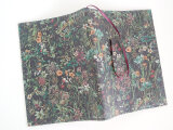 リバティの人気生地、ワイルドフラワーズ Wild Flowers(ダークグリーン)のラミネート生地(つや無)でA5サイズのノートカバーを作りました。