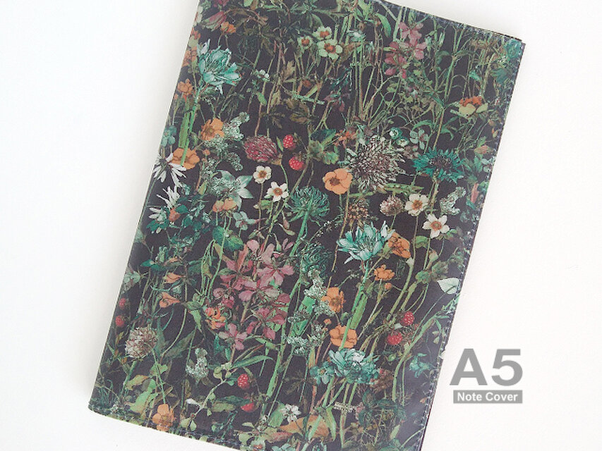 リバティ A5 ノートカバー ワイルドフラワーズ ダークグリーン