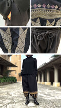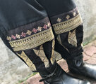 人気のもんぺパンツに美しいヤオ族の刺繍をあしらった新作です。濃紺無地のタイ手織り綿に渋い手刺繍が映えてとても可愛いです。