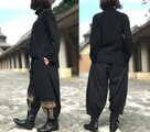L~LLサイズ、ジョムトン手織り綿のもんぺ、ヤオ刺繍付きパンツ黒、オールシーズン