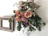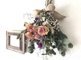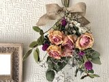 アンティークな実やユーカリと一緒に束ねたスワッグです。