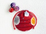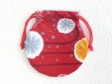 赤色の鹿の子模様と丸の幾何学模様の可愛い巾着袋です。