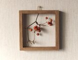 アンティーク調に仕上げた自家製フレームにドライフラワーやプリザーブドフラワーなどをはめこみました。