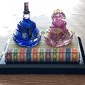 ●天空は、大人も楽しめる雰囲気の作品でお内裏様は青い空のようです。光があたると、ガラスなので、美しさが増します!また、お雛様はピンクで、天女様のように美しいカラーで製作しました。