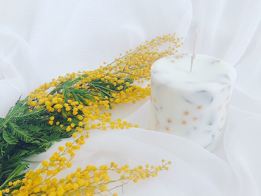 soycandle*ボタニカルキャンドル*アロマキャンドル*100%ソイワックス*ドライフラワー*ユーカリ*ミモザ*