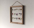 アンティーク調に仕上げた自家製フレームに木の実等を貼り付けました。