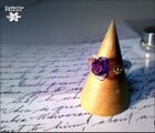 [Palette Planet LA]18KYG Rose Carved Amethyst & Sapphire Chain Ring