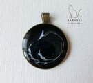 濃紺の背景に草のレースをつけて飛ぶ白い鳥を描いたオリジナルイラスト(原画)をレジンでとじこめました。