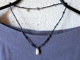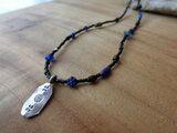 *古のネックレス。@日本の古ビーズ+クリスマスビーズ(黒/瑠璃)+カレンシルバー