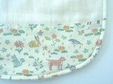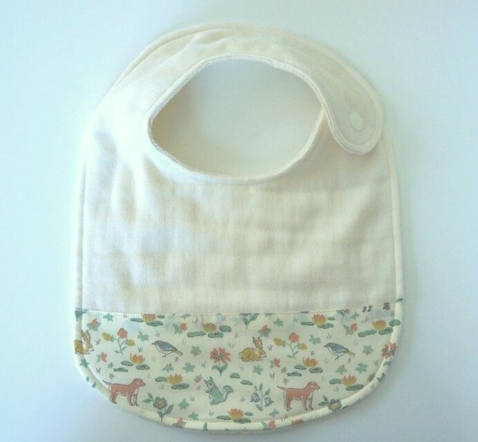 表地はオーガニックコットンの三重ガーゼの上にリバティプリントの布を重ね、裏地はオーガニックコットンのパイル地を使ったスタイです。