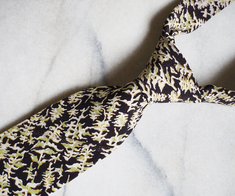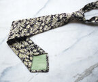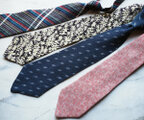 遊び心にあふれた日本の着物地は、ネクタイに生まれ変わってもしっかりと主張があります。いかにもな和柄ですと主張がありすぎて合わせるのが大変になりますが、こんな小紋柄であれば年齢を問わず、幅広いコーディネートで締めていただけます。
