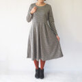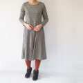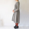 【XS-LL受注制作】アーミッシュ風シンプルワンピース◇千鳥格子のアーガイルチェック・黒(ベージュ地)*やや厚手生地*