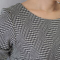 \人気の千鳥格子柄の登場です。落ち感のある生地で、スカートのドレープが綺麗。着ていて気持ちがよい、テロンとした質感です/