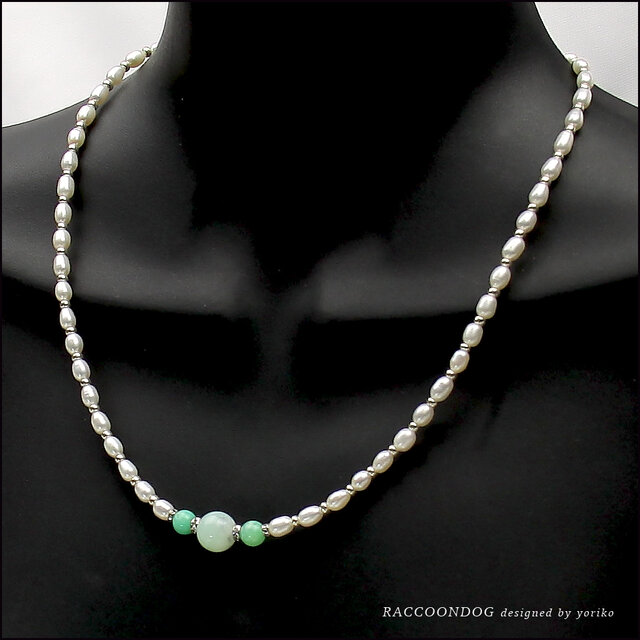 クリソプレーズの石のカラーが淡く優しいので、邪魔にならない様に淡水パールで繋げてみました。